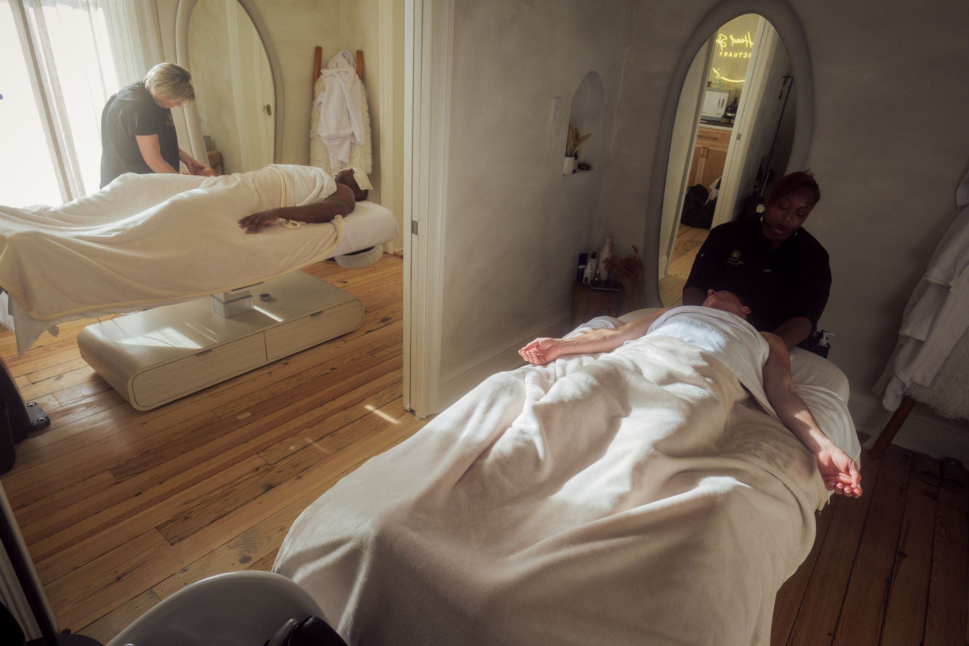 Step into The Ethereal Suite — our newest private sanctuary designed for two. Now open for shared experiences, this serene space invites couples, friends, or loved ones to unwind together with side-by-side massages, facials, or a personalized combination of both.