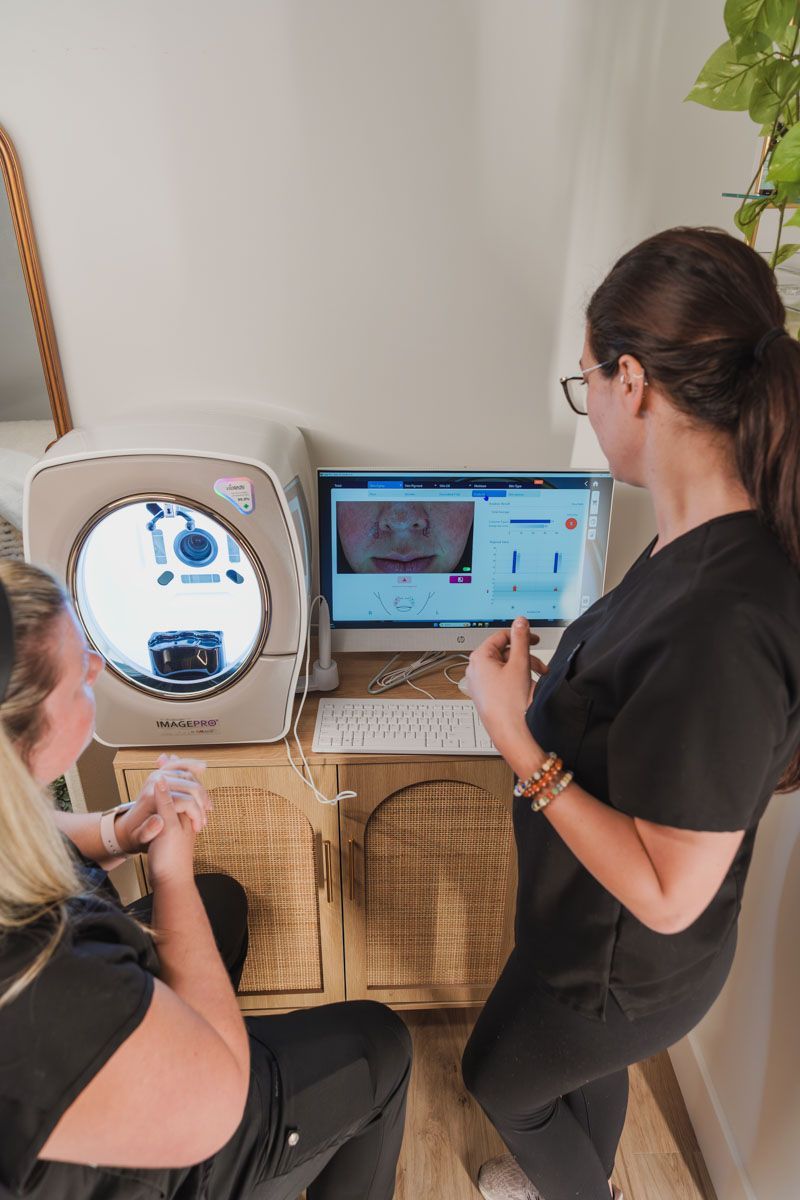 Our state-of-the-art facial scanner provides not only immediate data to guide your treatment but also allows us to track your skin's progress over time. This ensures that each treatment is more effective, with visible results as you continue your skincare journey with us.